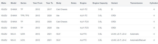 Sakura Filter Kit for Isuzu DMAX TF 4jj1tc 3.2l 6cyl 2012- onwards (K-15310)